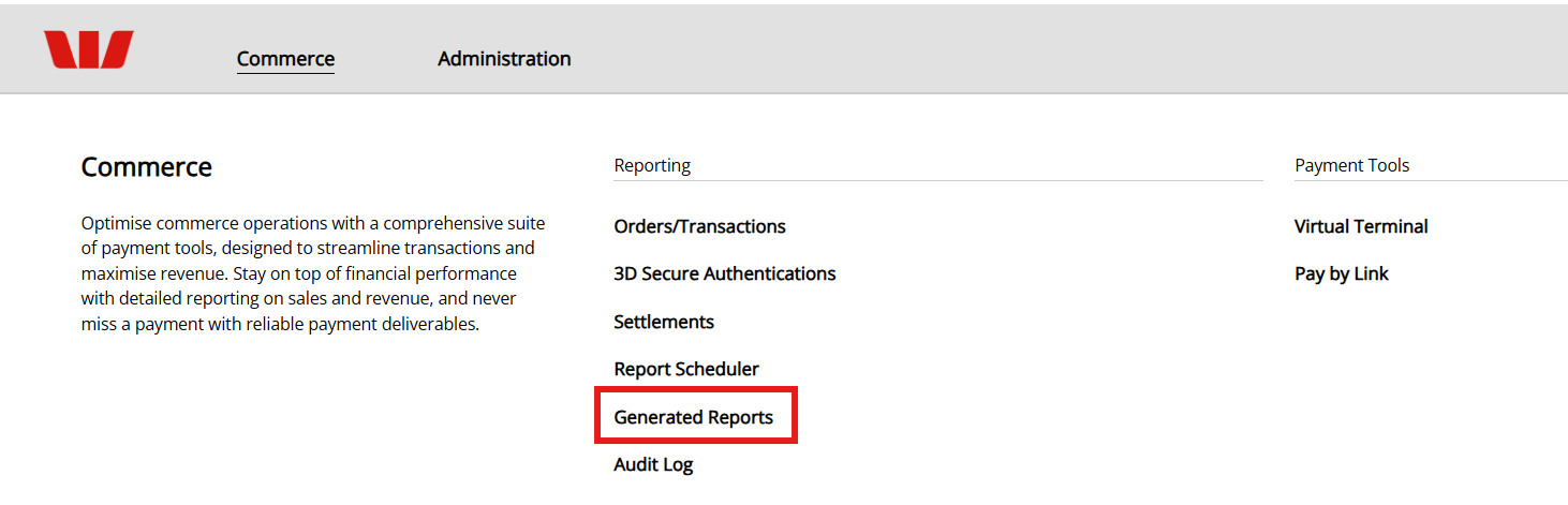 In the OnlinePay dashboard, navigate to Commerce > Reporting > Orders/Transactions.